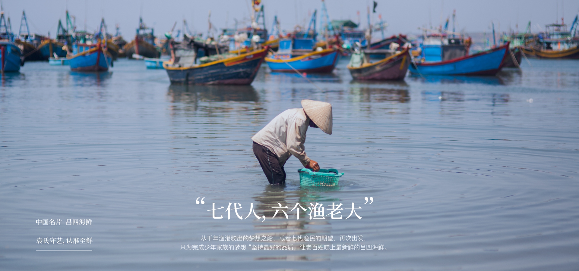 “至鮮、“呂四至鮮”是江蘇啟東市至誠水產(chǎn)品有限公司旗下專注高品質(zhì)精品海鮮的新消費品牌。始于19世紀(jì),是由“七代人,六位船長”傳承而來的家族產(chǎn)業(yè)。作為第八代漁民后代,學(xué)成歸國后致力于家鄉(xiāng)傳統(tǒng)農(nóng)業(yè),結(jié)合沉淀行業(yè)百余年的傳統(tǒng)實體工廠優(yōu)勢和作為新時代漁民后代的數(shù)字化品牌思維,創(chuàng)造了高品質(zhì)的海鮮食材品牌——呂四至鮮。